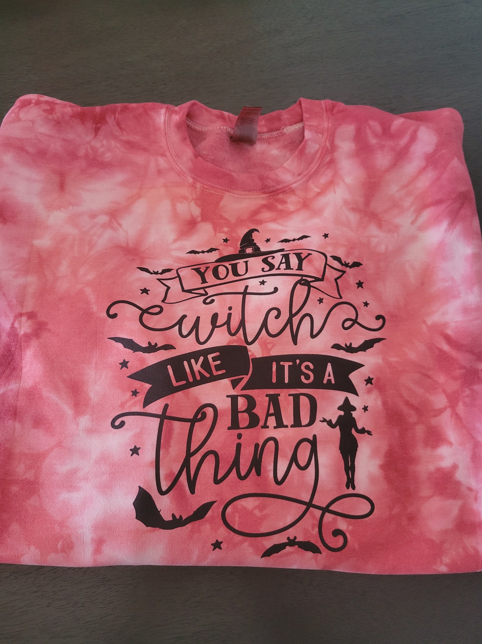 Tie Dyed You Say Witch Like It's a Bad Thing! Screen print on sweatshirt.